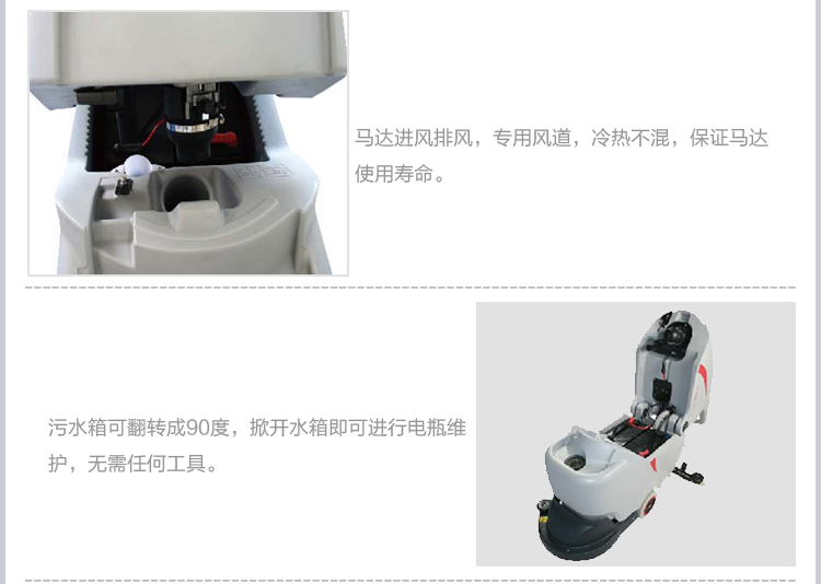 2、快捷方便:刷洗、吸干一次性完成,清潔地面污垢;一個非專業員工即可操作維護。